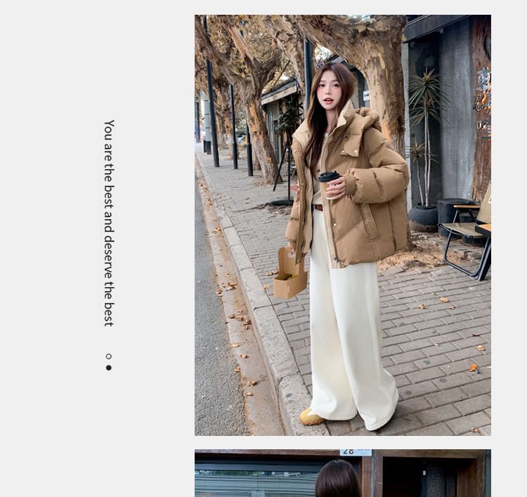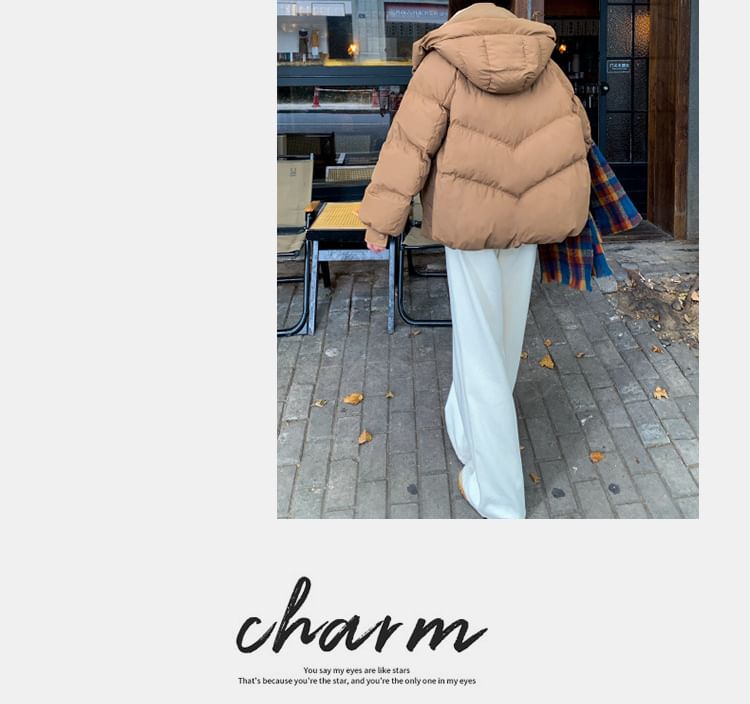 Stand Collar Two Tone Hood Zip Puffer Jacket