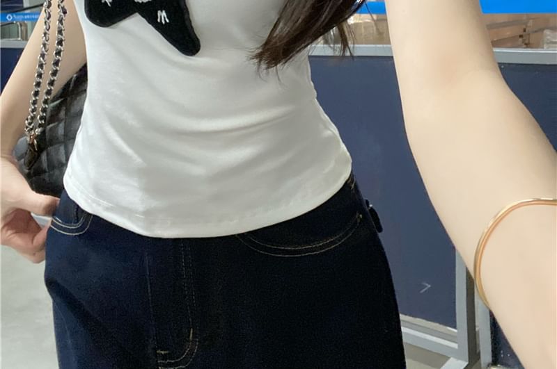 Star Slim Fit Tank Applique Top One-Shoulder