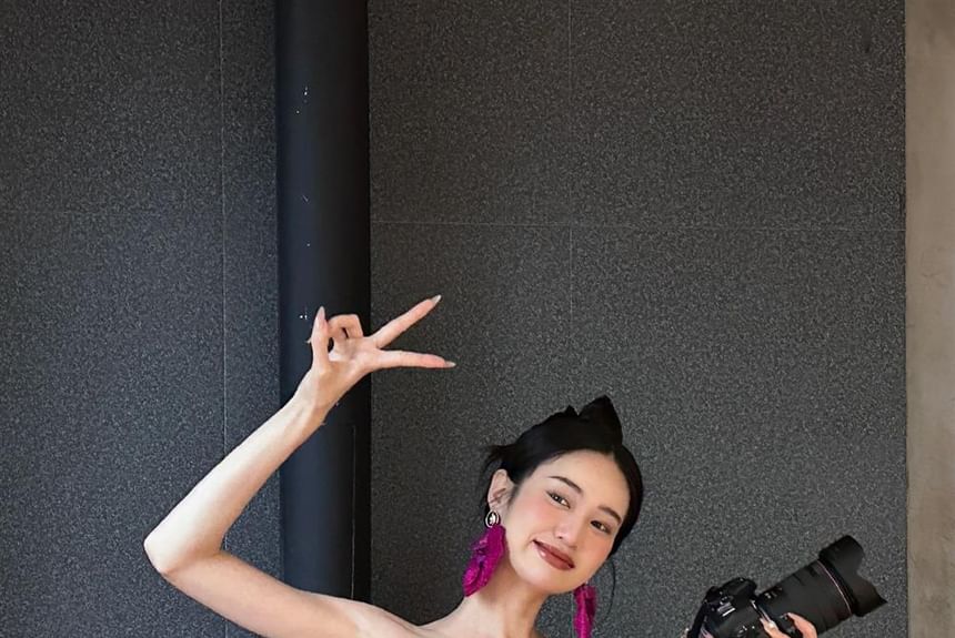 Strapless Floral Cutout Slit Asymmetrical Wrap Midi Bodycon Dress