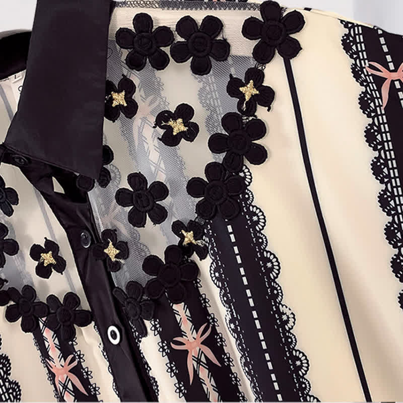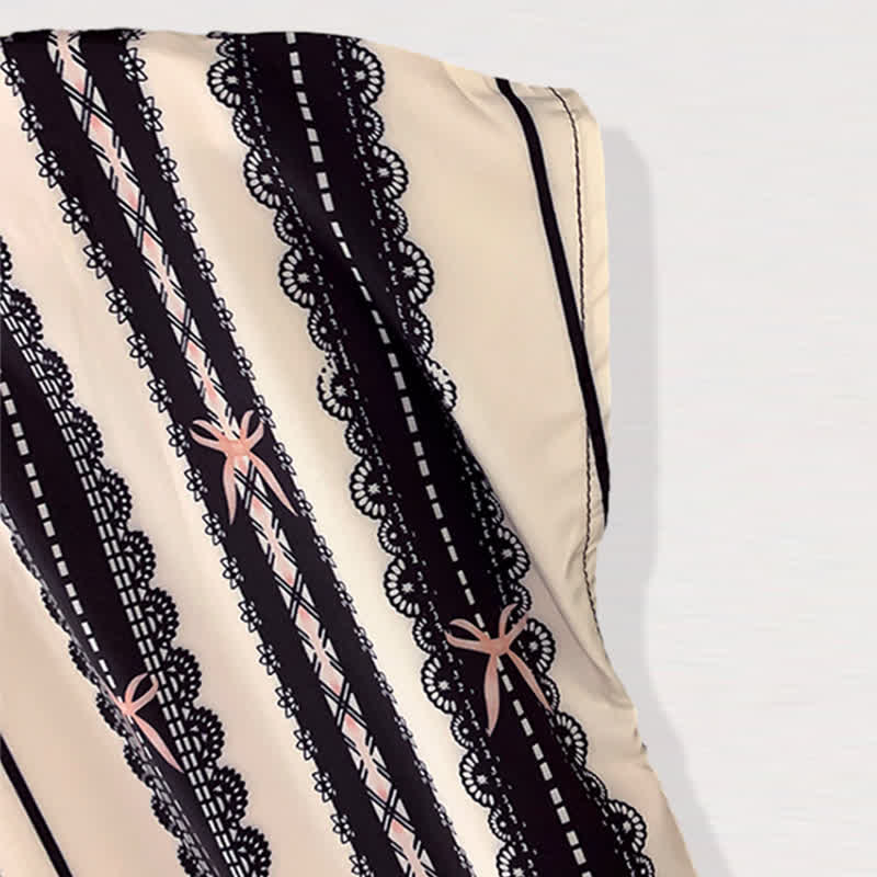 Stripe Print Mesh Chiffon T-Shirt Casual Belted Shorts