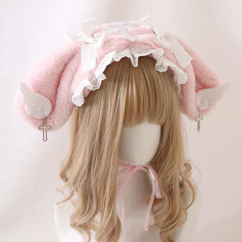 Add a touch of elegance to your look with the Sweet Bowknot Cross Decor Lolita Plush Hat. The charming bowknot and cross detailing adds a unique and stylish touch, making this hat perfect for any Lolita-inspired outfit. Made from soft plush material, it's also comfortable to wear all day long.