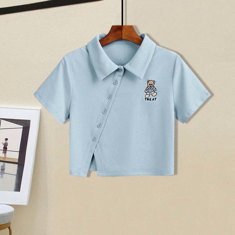 Sweet Lapel Top T-Shirt Irregular Lace Up Slip Dress Set