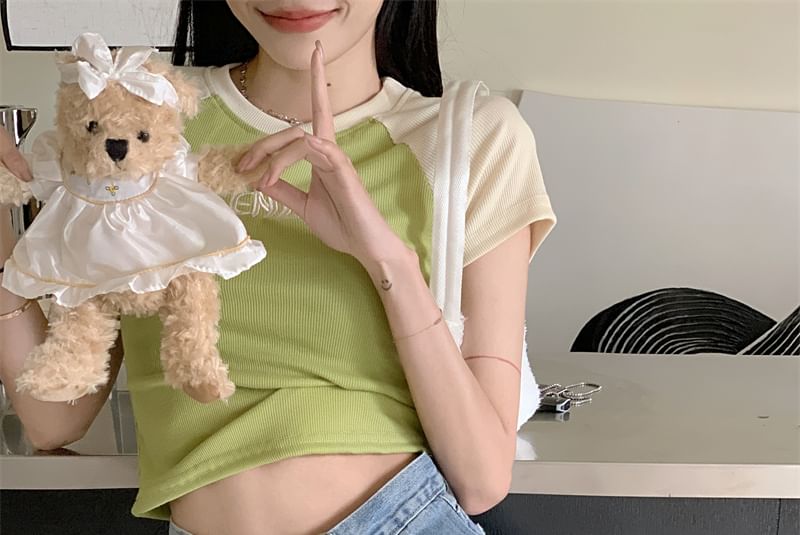 Short-Sleeve Crew Neck Letter Embroidered Cropped T-Shirt