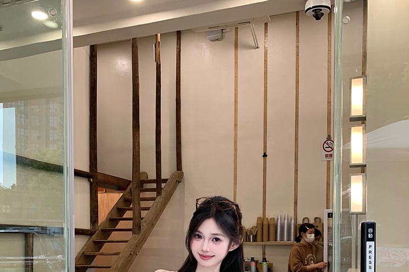 Tank Lace Top Bow Trim Fit Slim V-Neck