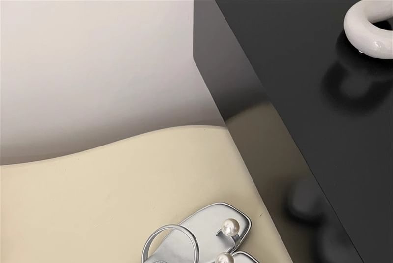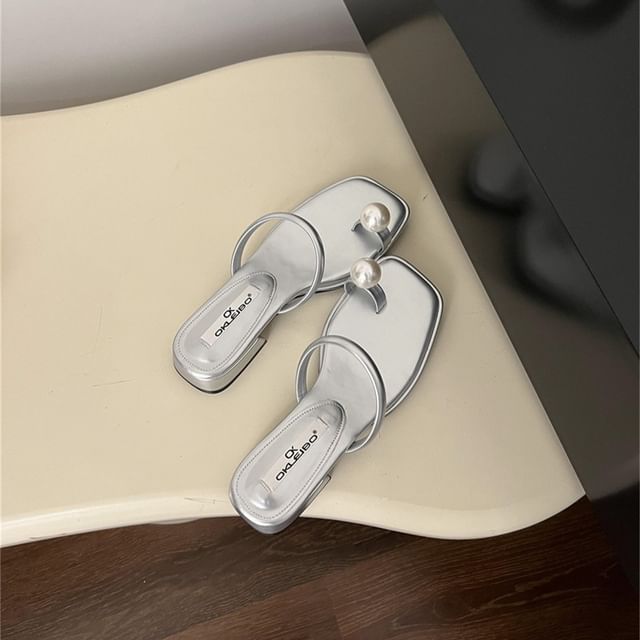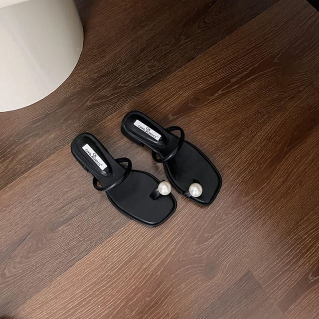 Toe Loop Faux Pearl Chunky Heel Slide Sandals