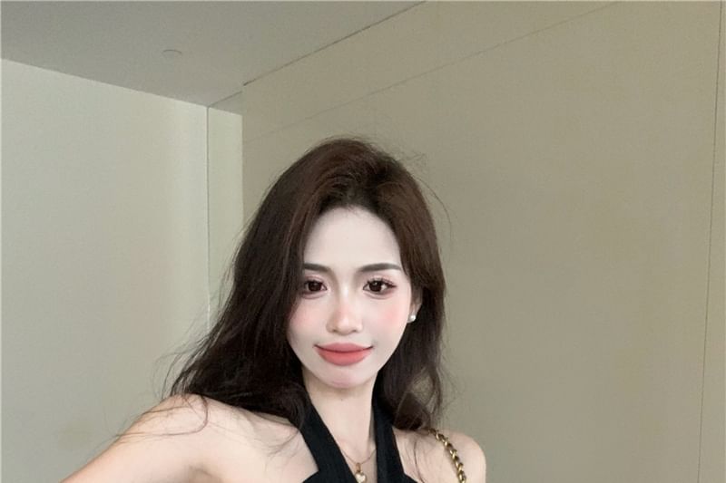 Top High Skirt Maxi Feather Trim Waist A-Line Plain / Crop Pleated Halter