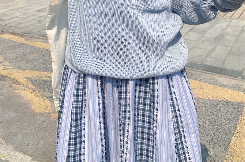 Top + Knit Sleeveless Set: Plain Long-Sleeve
