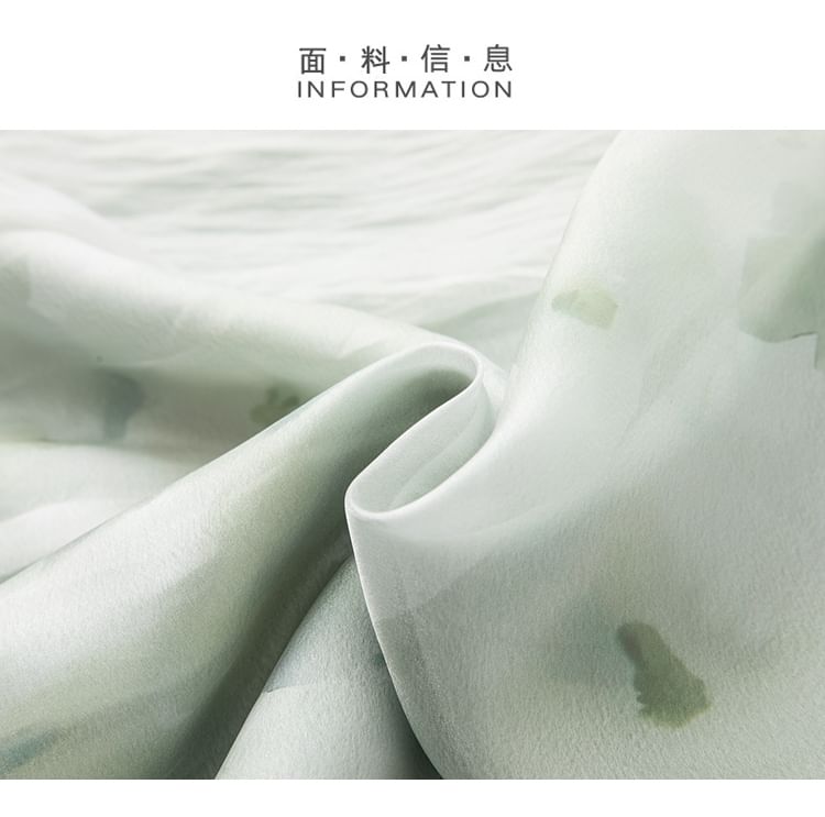 Traditional Chinese Spaghetti Strap Print Faux Pearl Midi A-Line Dress / Light Jacket / Flower Brooch