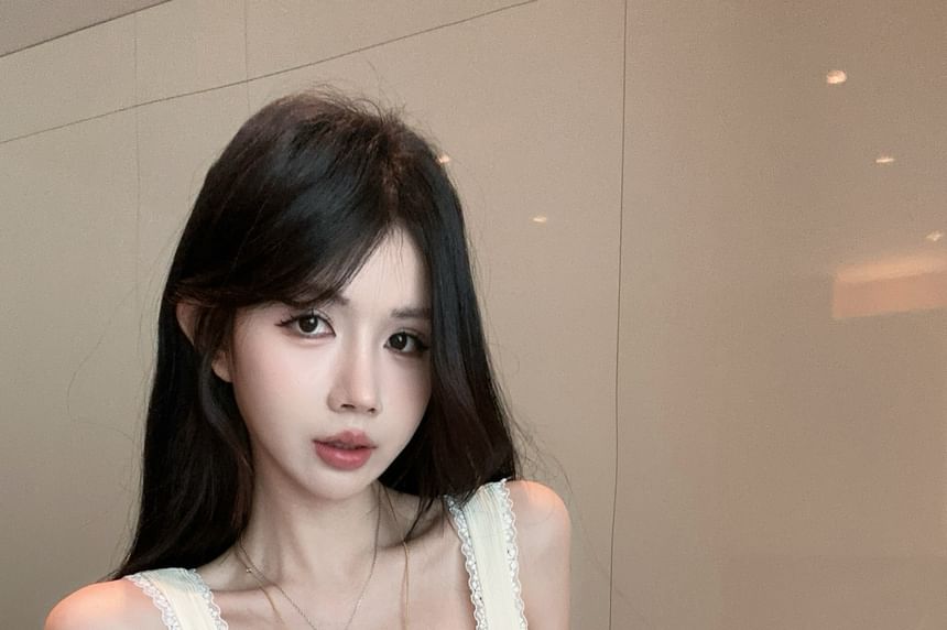 Square Neck Lettering Lace Trim Crop Slim Fit Tank Top