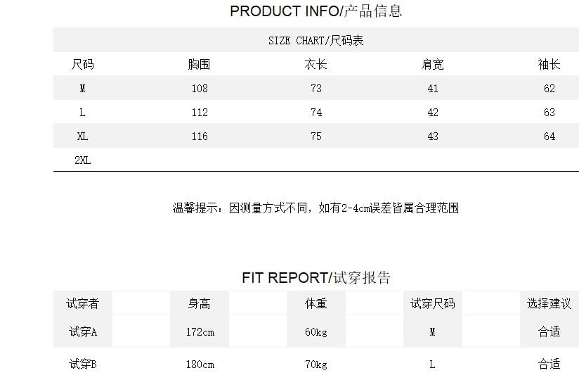 | Chest | Total Length | Shoulder Width | Sleeve Length |