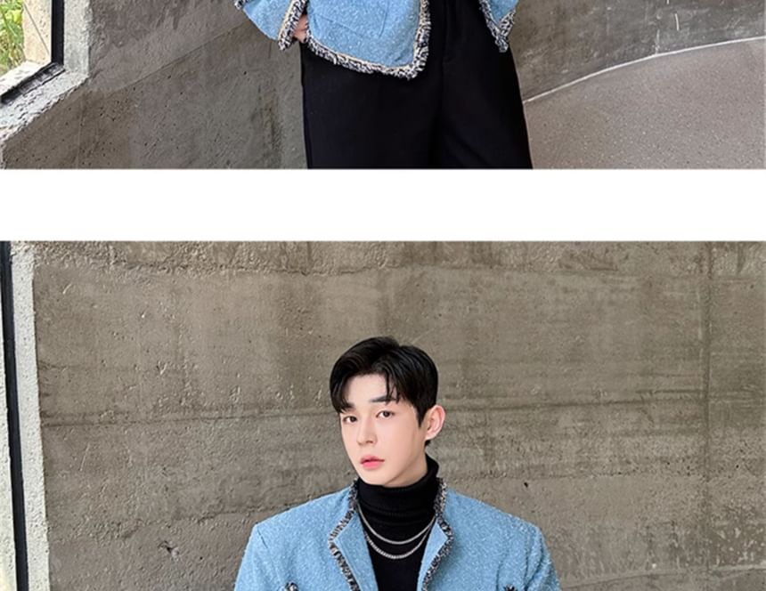 Tweed Trim Button-Up Jacket