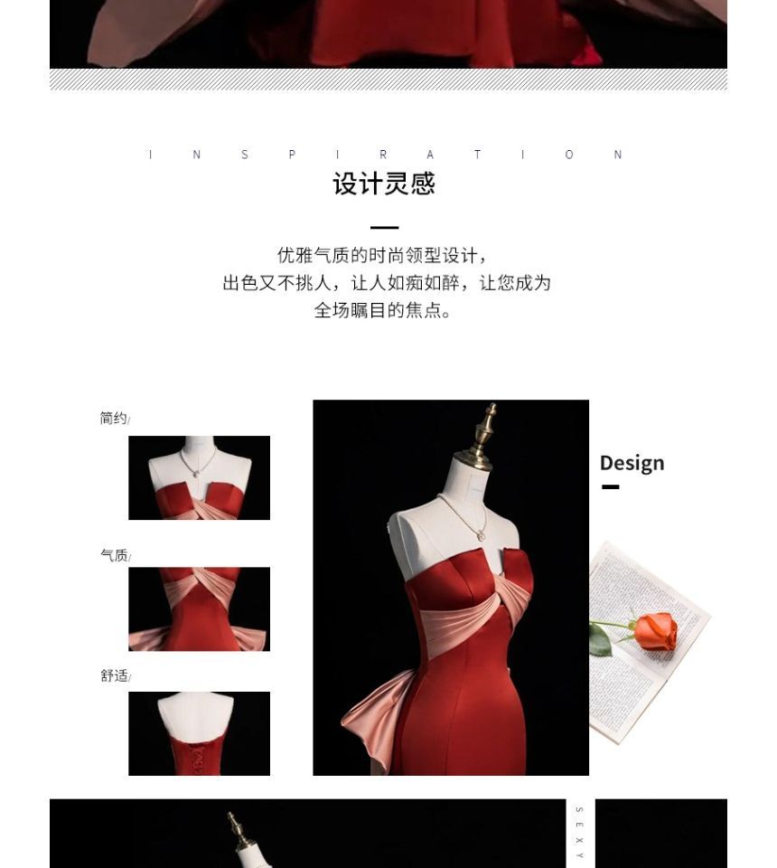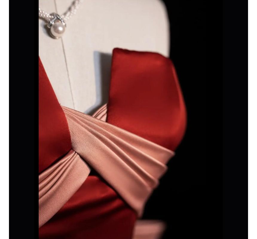 Two Tone Bow Criss Cross Mermaid Tube Evening Gown