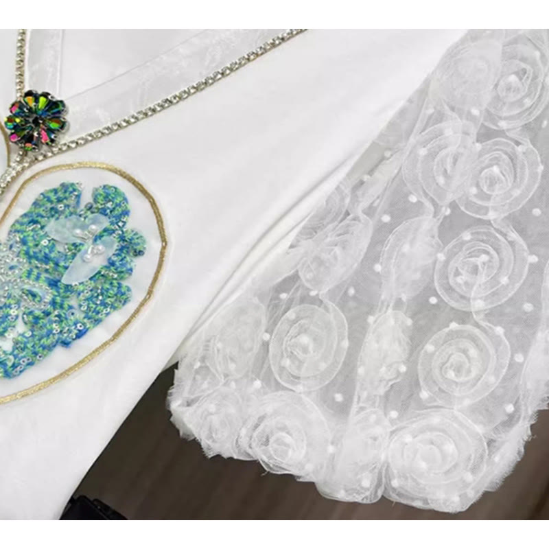 L: Bust 94 cm. Length 62 cm. Sleeve 25 cm