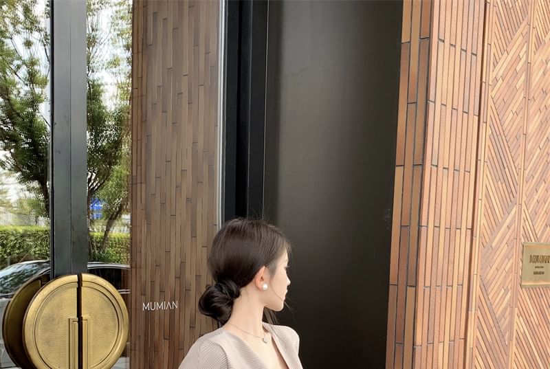 V-Neck High Pencil Open Waist Fringe Skirt Maxi Jacket Top Camisole Plain Trim / Front Lace