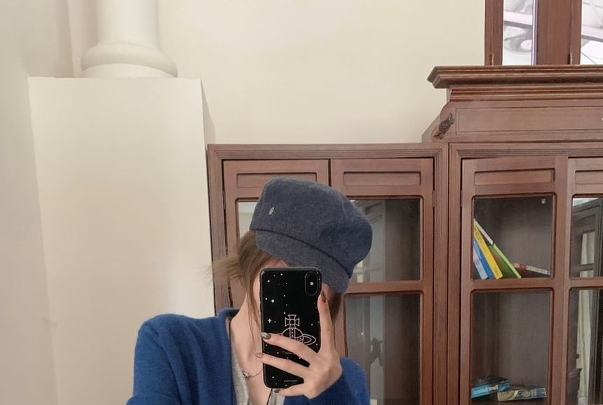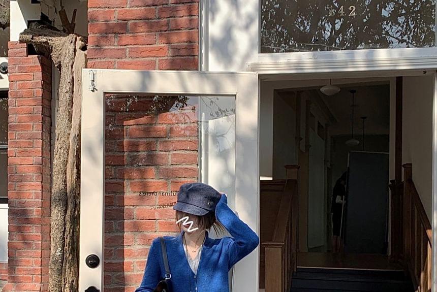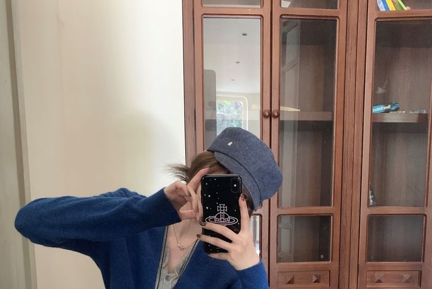 V-Neck Plain Mock Two-Piece Cardigan / High Waist Plain Pleated A-Line Skirt