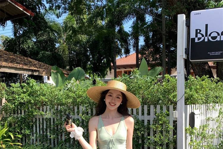 V-Neck Top Tie Plain Spaghetti Camisole Neck Strap