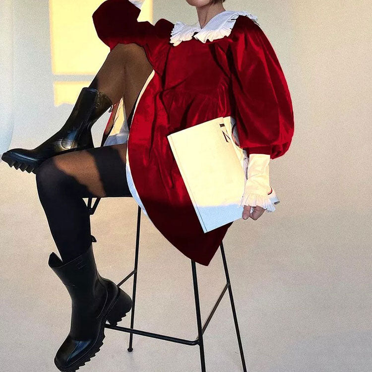 Indulge in elegance with our Velvet Collar Mini Black Dress. Crafted with luxurious velvet collar, this dress adds a touch of sophistication to your wardrobe. Show off your style and grace with this stunning piece.
