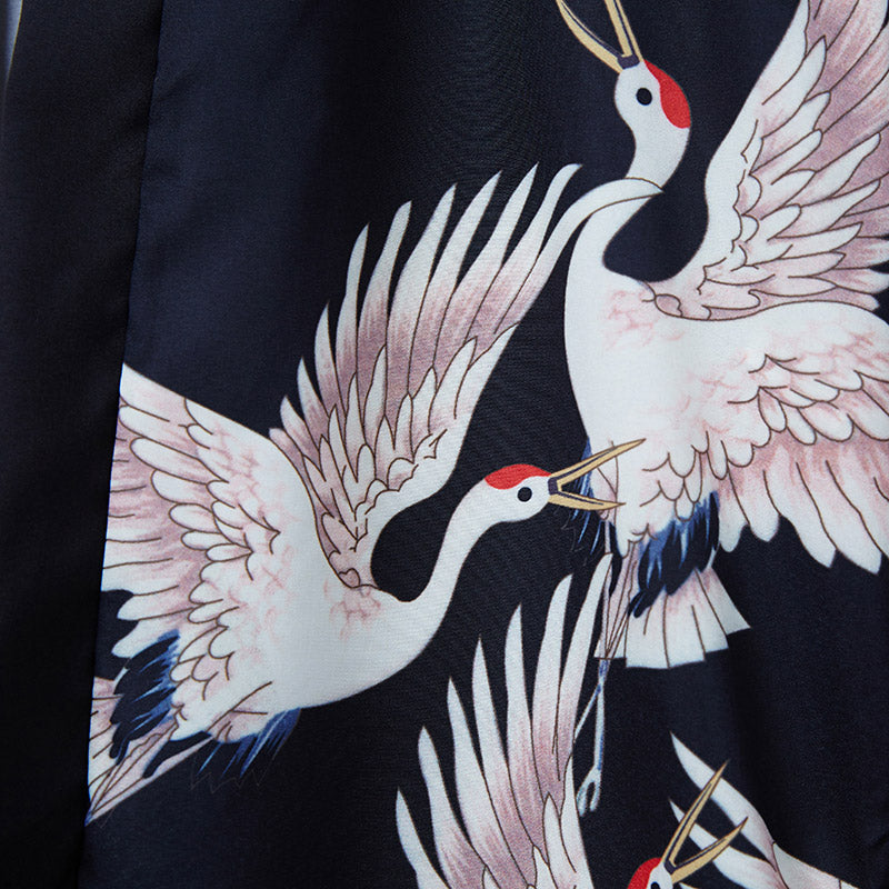 Introducing our Vintage Black Crane Long Cardigan Kimono Outerwear. Made from luxurious, lightweight fabric, this elegant piece will elevate any outfit. With its timeless design and versatile style, it's perfect for adding a touch of sophistication to your wardrobe. Stay fashionable and comfortable with this unique outerwear.