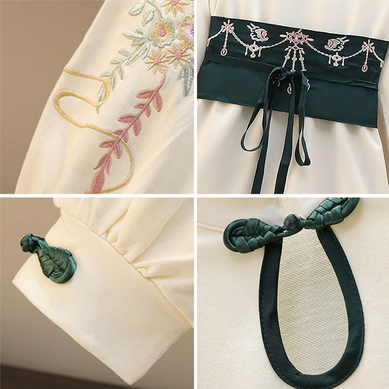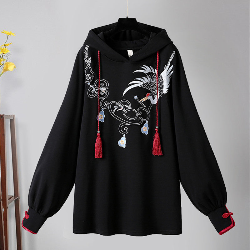 Vintage Crane Embroidery Plush Sweatshirt Dress