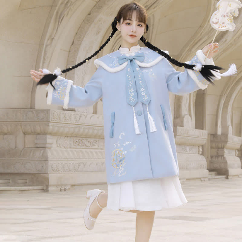 Vintage Jacquard Cheongsam Doll Collar Tassel Plush Coat