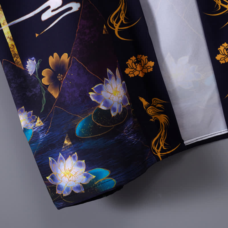 Vintage Phoenix Crane Print Cardigan Outerwear