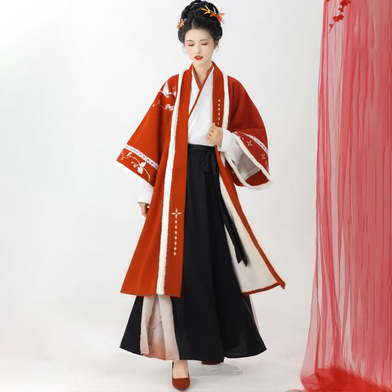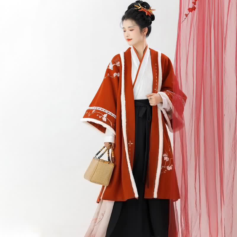 Vintage Red Plum Blossom Embroidery Cardigan Pants