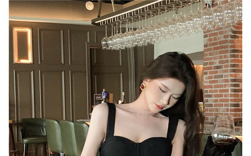 Wide Strap Plain Midi Bodycon Dress