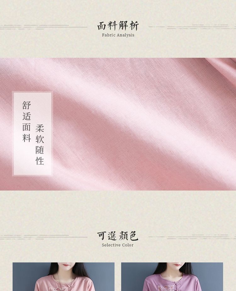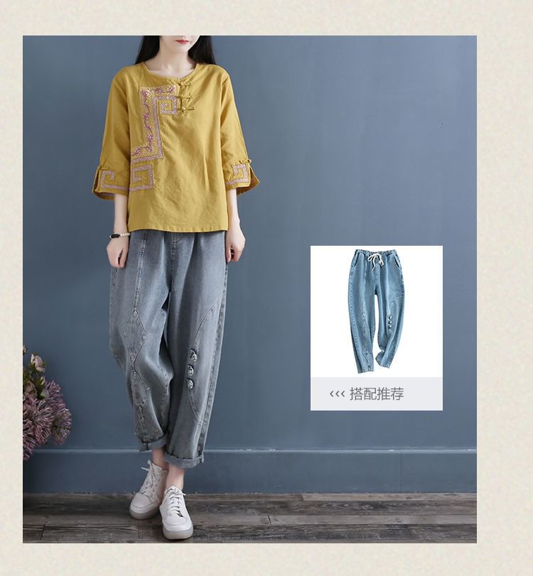 3/4 Sleeve Crew Neck Floral Embroidered Blouse