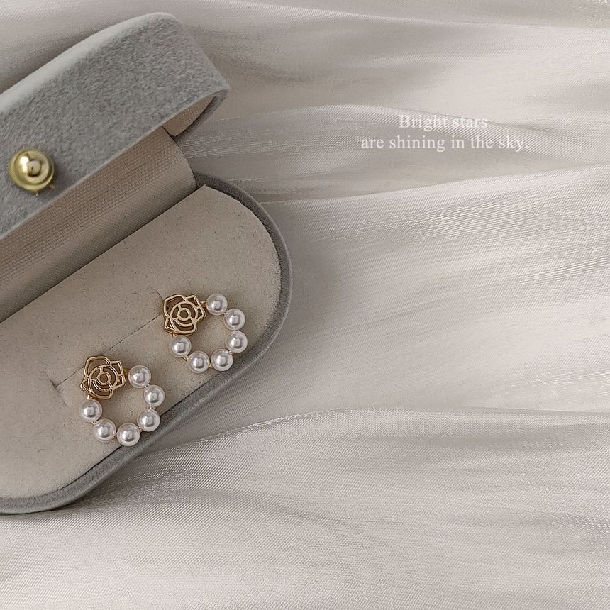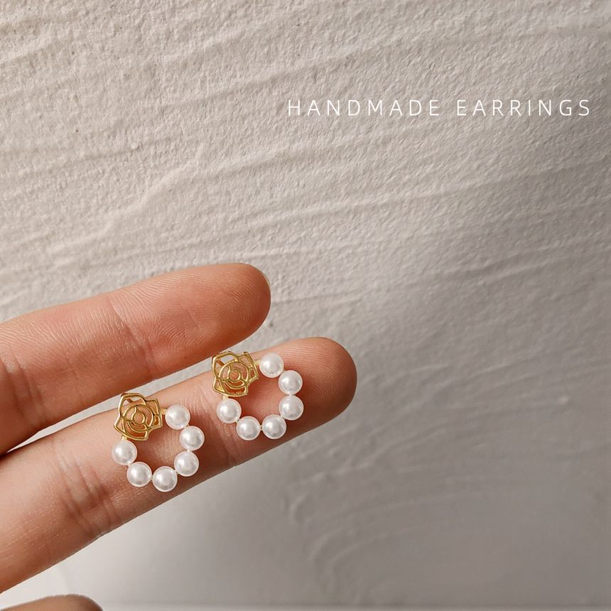 925 Sterling Silver Faux Pearl Mini Hoop Drop Earring