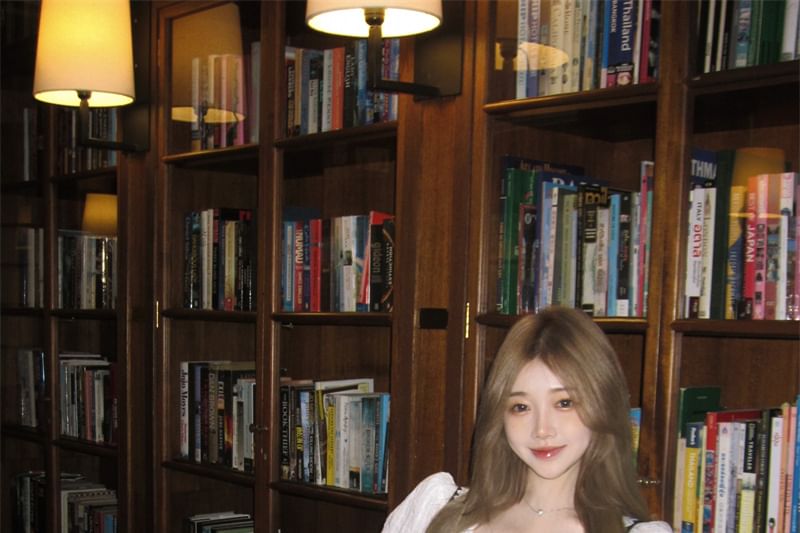 A-Line / Cami High Plain Trim Blouse Top Puff-Sleeve Pleated Waist Plaid Button-Up Striped Mini Skirt Lace