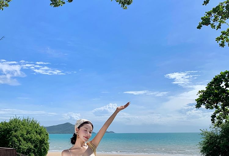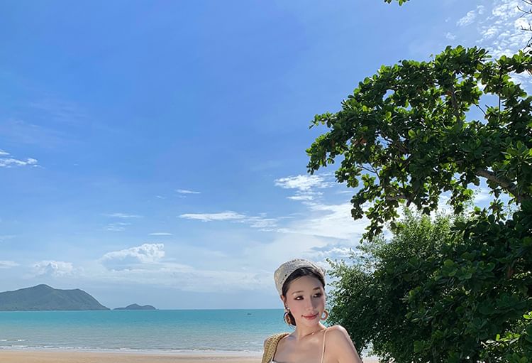 Back Dress Spaghetti Open Strap Floral Accent Bow Maxi Neck Print Square A-Line