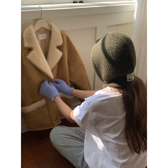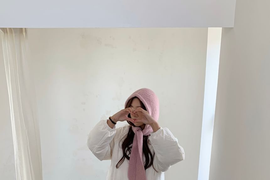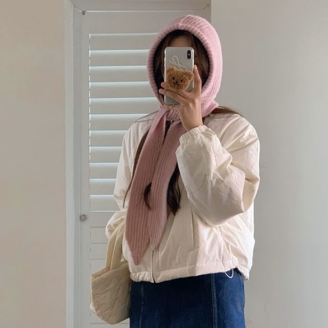 Balaclava Knit Applique Plain Ribbed Lace-Up