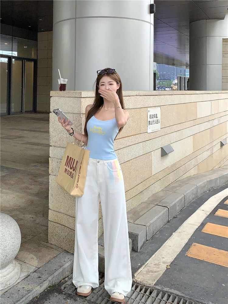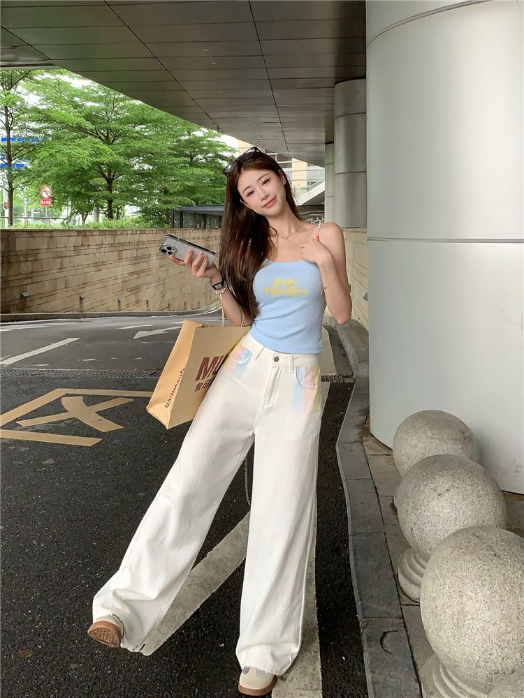 Beaded Neck Cami Scoop Crop Print Lettering Top