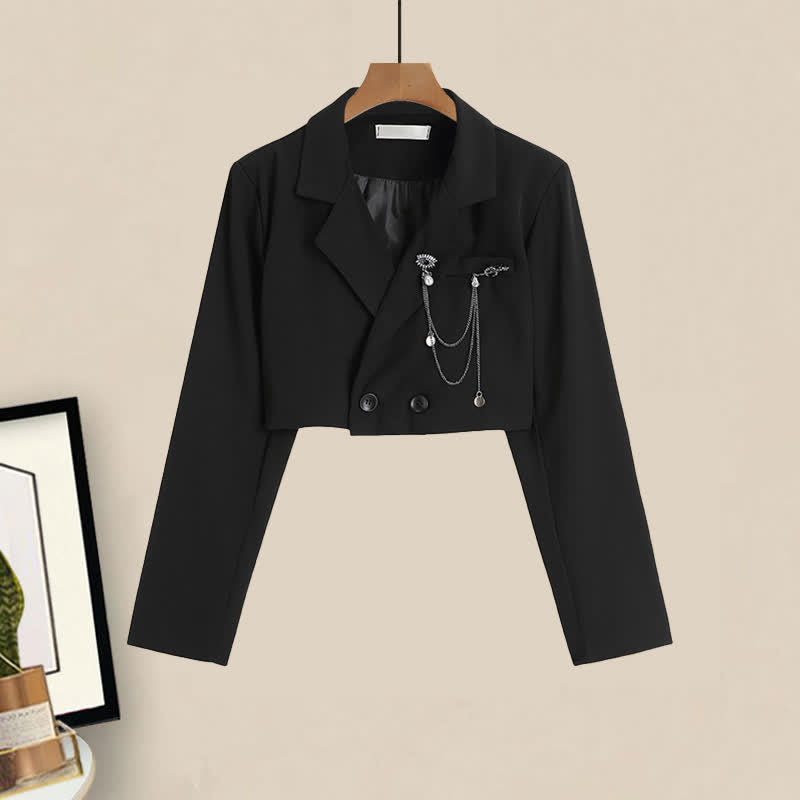 Elevate your look with our Black Decor Short Blazer Lace Up Irregular Slip Dress Set. Featuring a striking black lace up design and an elegant short blazer, this set adds a touch of sophistication to any outfit. With its unique irregular slip dress, you'll stand out in style all day.