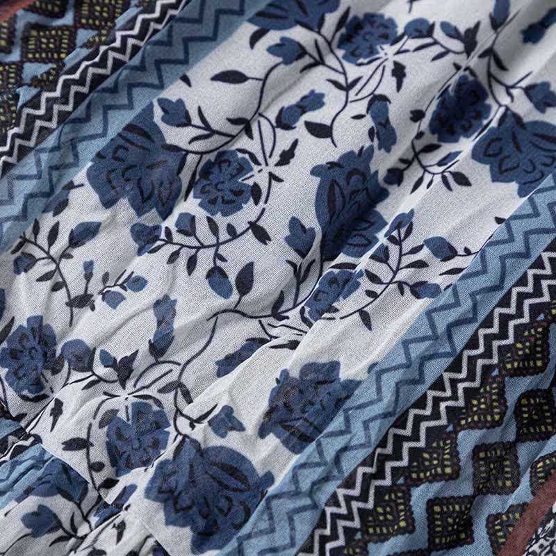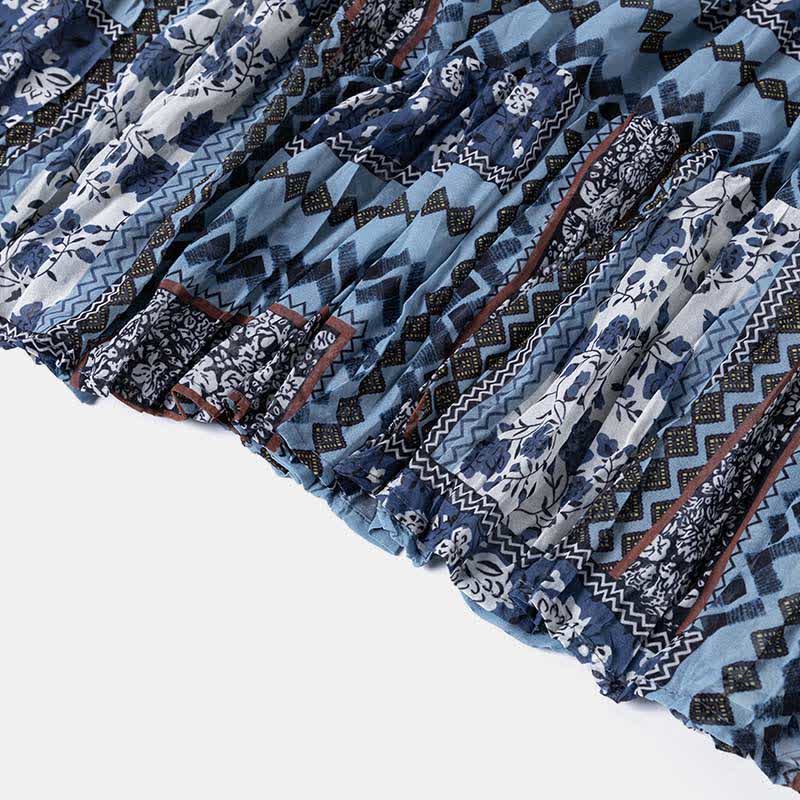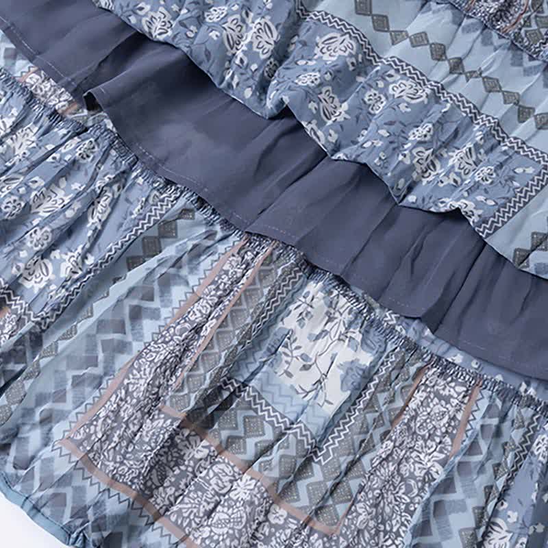 Boho Belted Crochet Hollow Out Top Vintage Floral Print Slip Dress