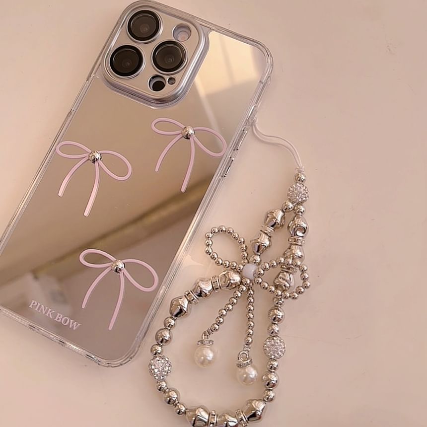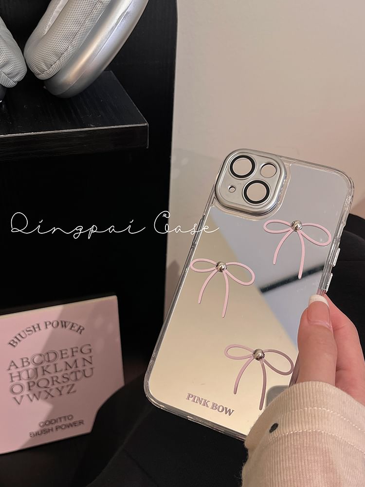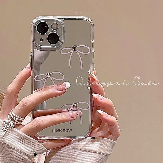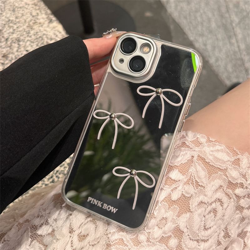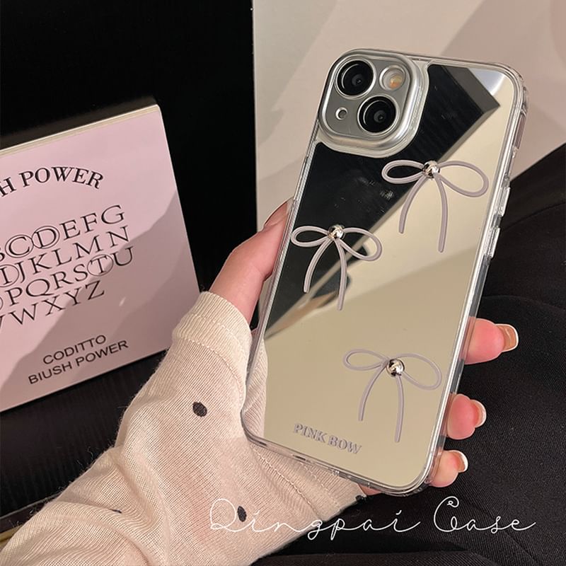 Bow Mirrored Phone Case - iPhone 15 Pro Max / 15 Pro / 15 Plus / 15 / 14 Pro Max / 14 Pro / 14 Plus / 14 / 13 Pro Max / 13 Pro / 13 / 13 mini / 12 Pro Max / 12 Pro / 12 / 12 mini / 11 Pro Max / 11 Pro / 11