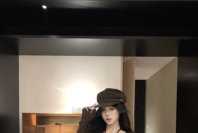 Butterfly Midi Long Top Plain Strapless Front Tie Trim Sleeve / V-Neck Print Bodycon Ruffle Dress