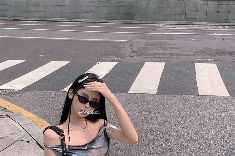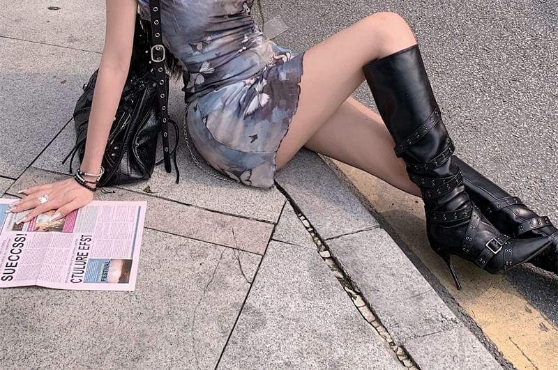 Butterfly Neck Dress Sleeveless A-Line Mini Cowl Print