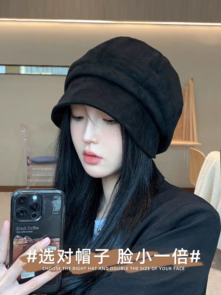 Cap Plain Leather Newsboy Faux