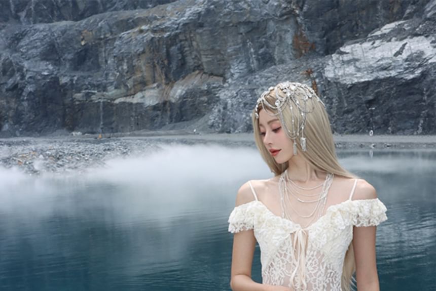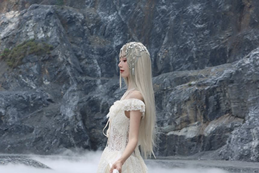 Cap-Sleeve Cold-Shoulder Lace Panel Maxi A-Line Dress