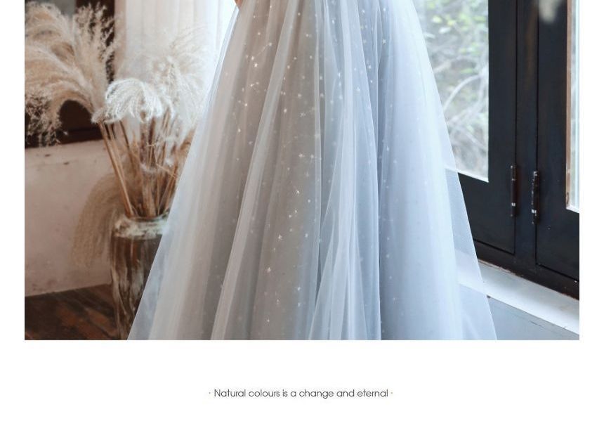 Cap-Sleeve Sequin Mesh Panel A-Line Evening Gown / Midi Dress
