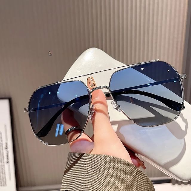 Double Bridge Metal Frame Polished Sunglasses / Case / Pouch / Cleaning Cloth / Set