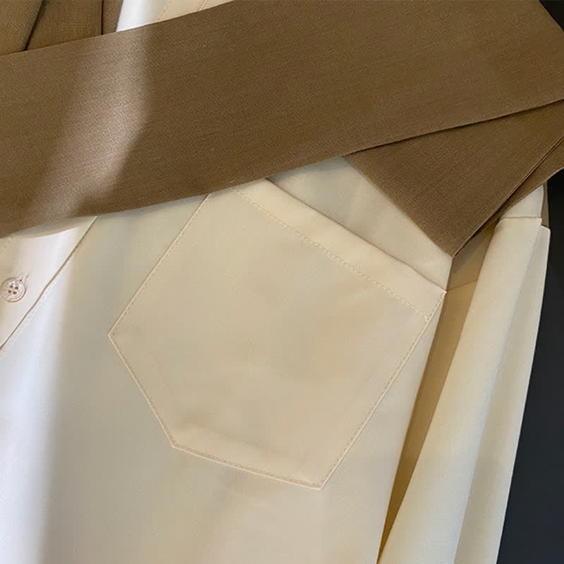 Casual Lapel Pocket Shirt High Waist Pants Set