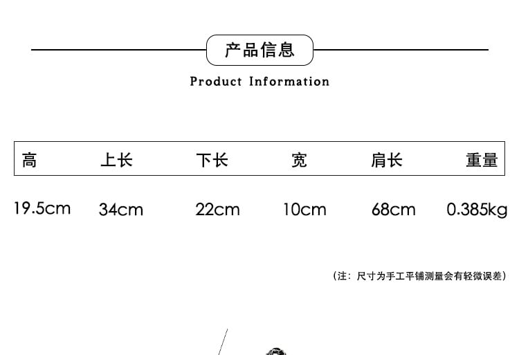 | Height | Upper Length | Bottom Length | Width | Strap Length |