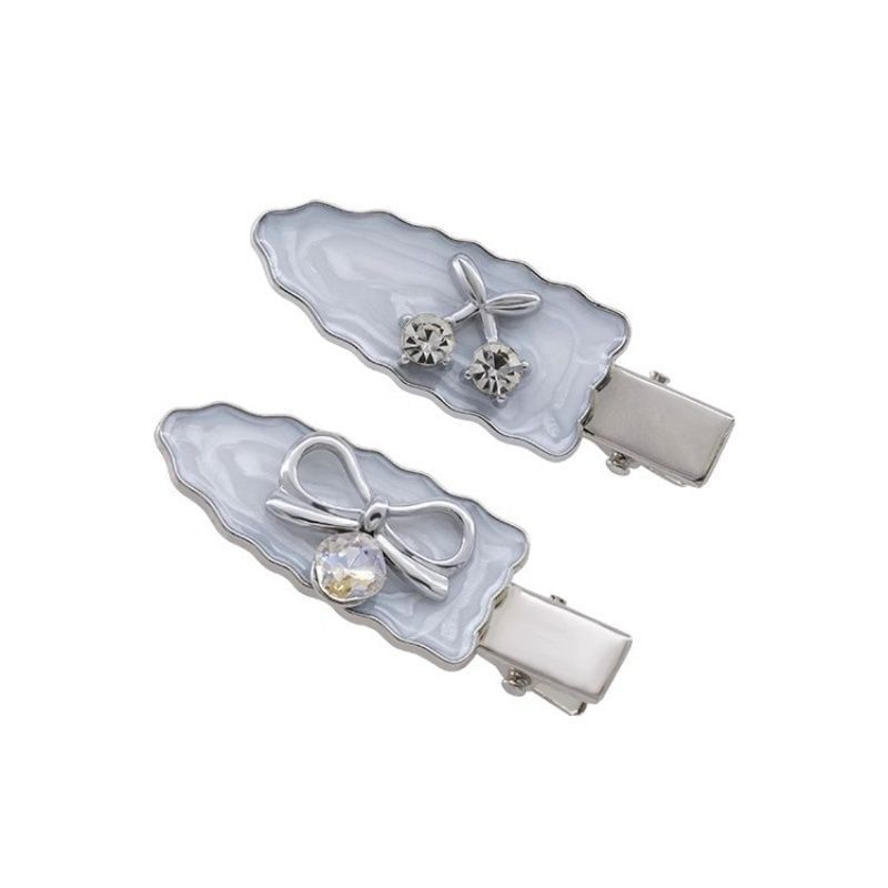 Set of 2: Bow / Cherry Rhinestone Alloy Hair Clip