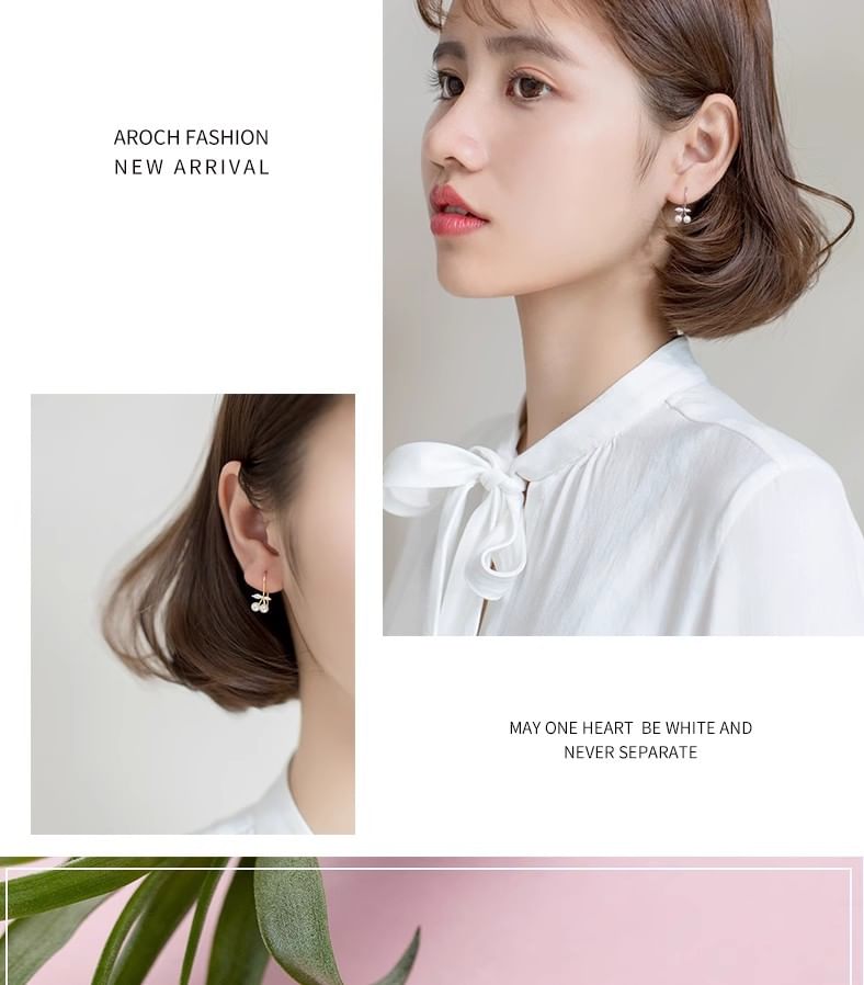 Cherry Rhinestone Faux Pearl Sterling Silver Drop Earring