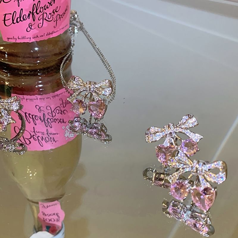 Cherry Rhinestone Pendant Alloy Necklace / Open Ring / Stud Earring