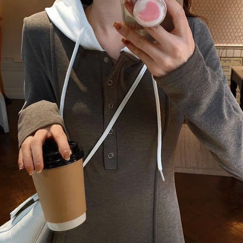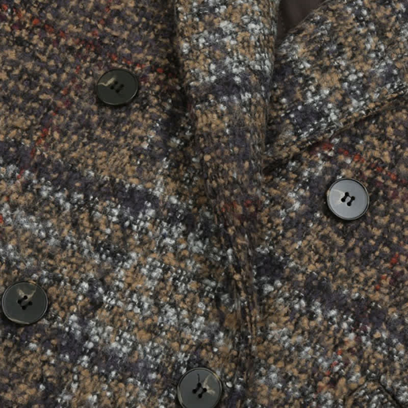 Chic Plaid Print Blazer Coat Hooded Midi Dress