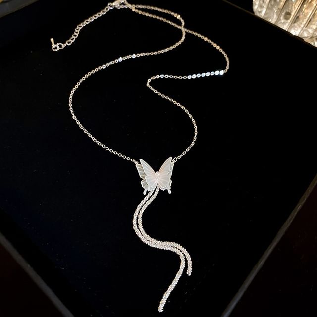 Choker Rhinestone Dangle / Butterfly Alloy Earring
