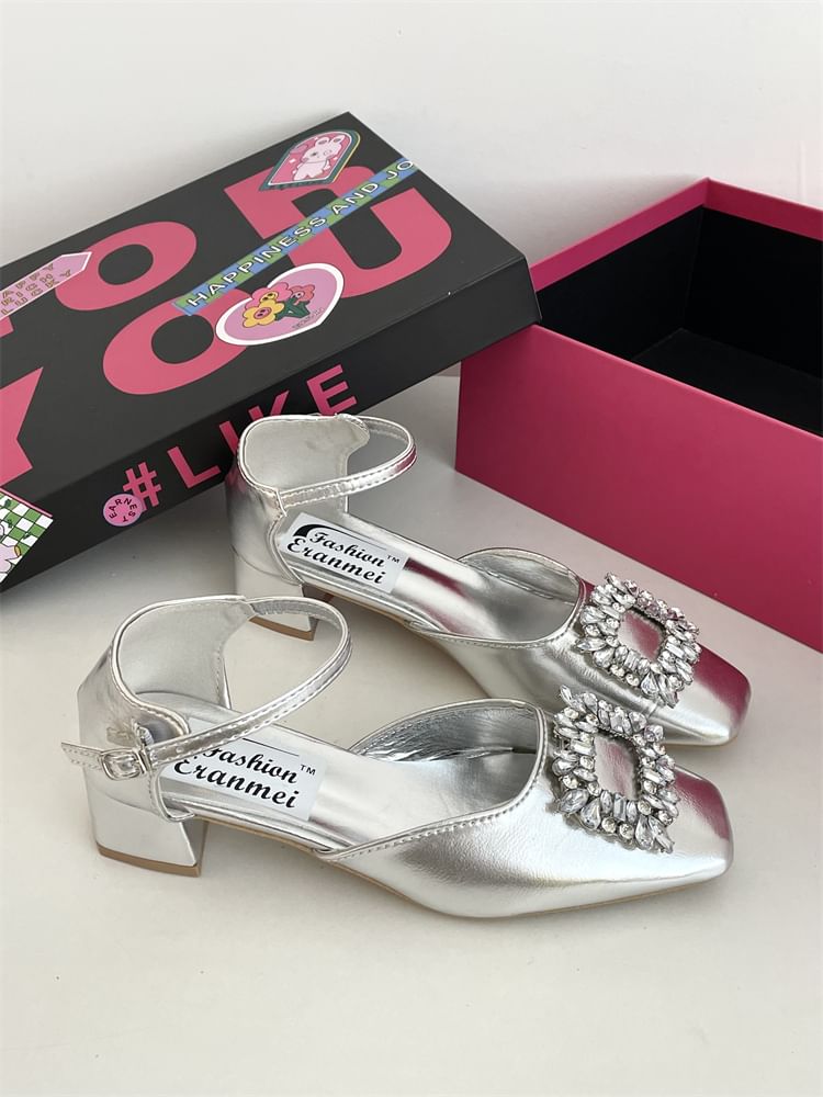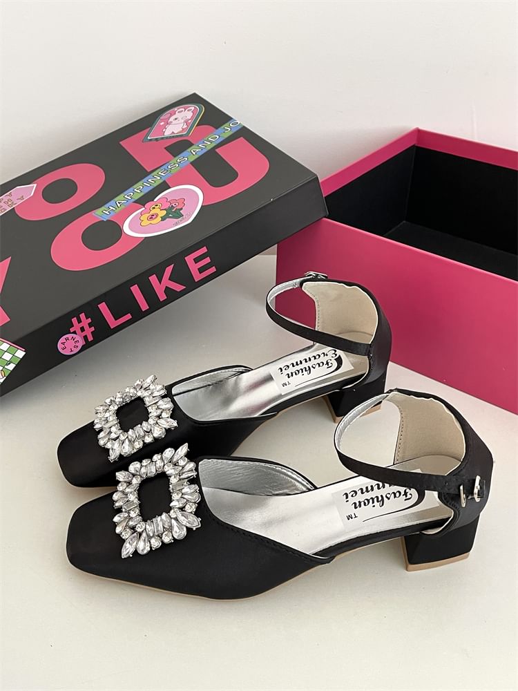 Chunky Heel Square Toe Ankle Strap Faux Leather D'Orsay Pumps